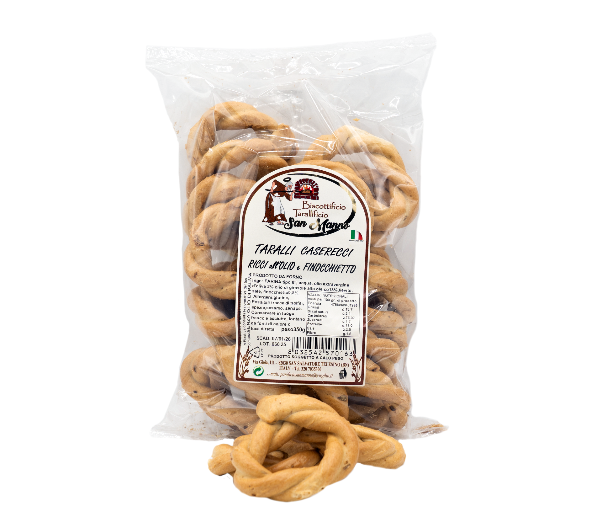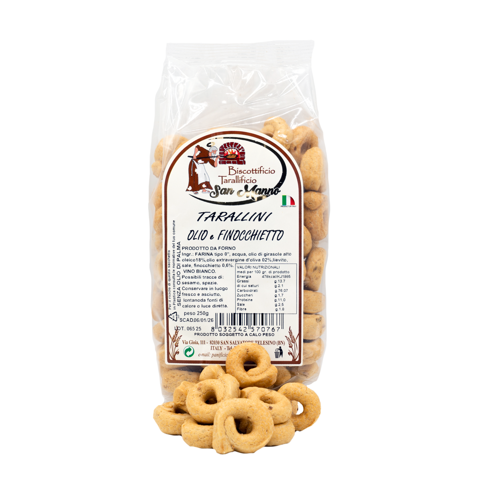 Il Biscottificio Tarallificio San Manno produce da decenni specialità da forno legate alla cultura alimentare del Sannio. Taralli, biscotti, ciabatte e altre delizie nascono da ricette autentiche, con un occhio alla salute e alla qualità.